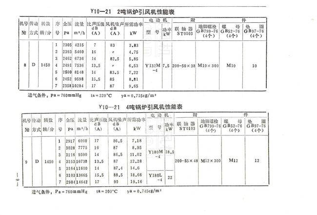 Y10-21型鍋爐離心風(fēng)機(jī)參數(shù)表