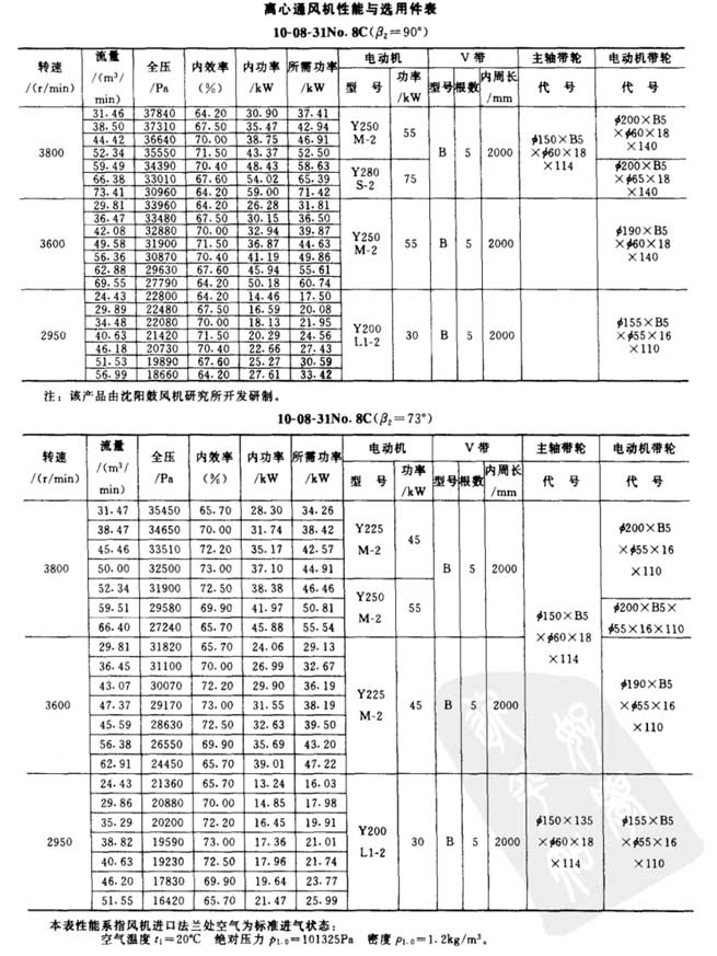 10-08-31型高壓離心風(fēng)機(jī)參數(shù)表