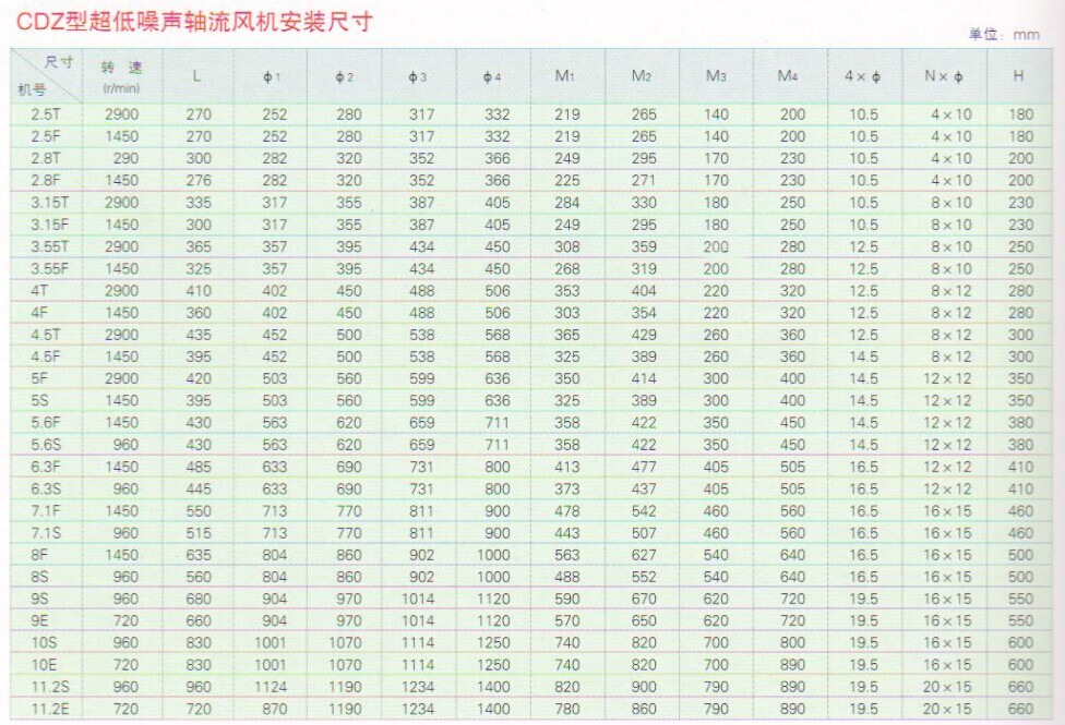 CDZ系列超低噪聲軸流風(fēng)機(jī)是高效、節(jié)能、超低噪聲的新型軸流風(fēng)機(jī)。該風(fēng)機(jī)具備T35-11軸流風(fēng)機(jī)的所有特點(diǎn),通過模型機(jī)的試驗(yàn)證明,由于采用了寬型前掠式葉片等柵距結(jié)構(gòu),減少了氣流在葉片表面上的分禽和氣流旋渦的形成。降低了風(fēng)機(jī)內(nèi)氣流的二次損耗,減少了聲源的空氣動(dòng)力噪聲,氣流穩(wěn)定,達(dá)到了國家規(guī)定的超低噪聲水準(zhǔn)。對(duì)保護(hù)環(huán)境,節(jié)約能源,具有很好的社會(huì)與經(jīng)濟(jì)效益。CDR系列超低噪聲軸流風(fēng)機(jī)全部選用優(yōu)質(zhì)鋼材制造.外型結(jié)構(gòu)分為管道式、固定式、旋轉(zhuǎn)式三種,根據(jù)不同風(fēng)量、風(fēng)壓的需要葉片的安裝角度分為A. B. C三個(gè)年度(詳見性能參數(shù)表)